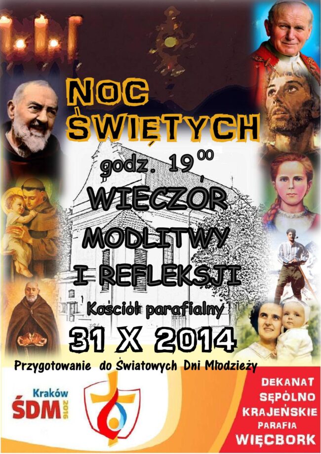 NOC ŚWIĘTYCH 2014 bez kategoriiPrzez Parafia Więcbork2014-11-01W naszym kosciele zostały wystawione w „Noc Swiętych” relikwie świętych – jakich – nie byłeś – dowiesz się jutro