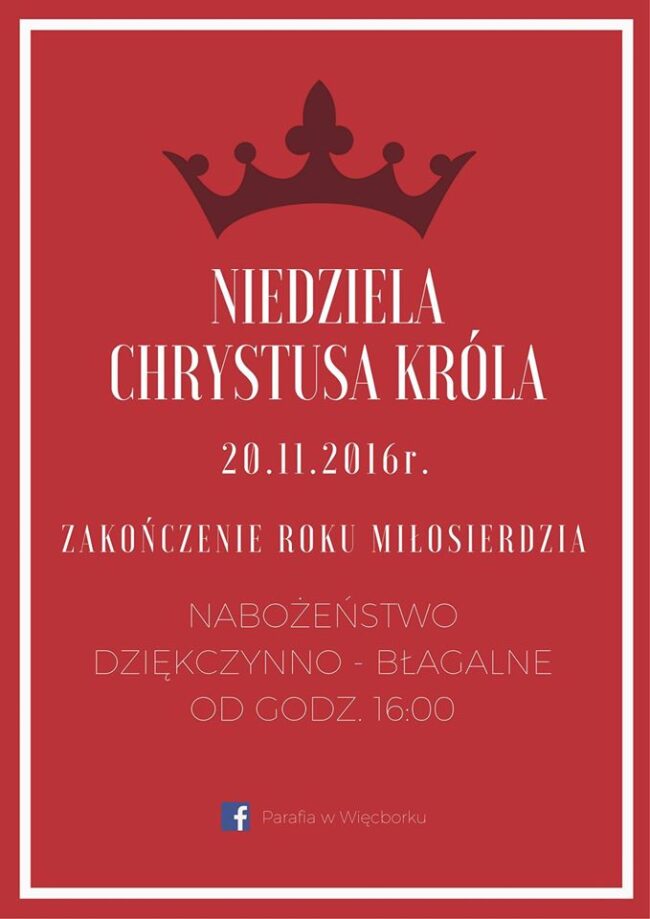 Za tydzień przypada ostatnia Niedziela roku liturgicznego – Niedziela Chrystusa Króla Wszechświata. Dla naszej Ojczyzny jest to dzień szczególny – dokona się publiczny akt przyjęcia Jezusa jako Pana i Króla! Tego dnia następuje jednocześnie zakończenie Roku Miłosierdzia. W związku z ogromną ilością różnych okazji i intencji, pragniemy tego dnia w sposób szczególny zgromadzić się również…