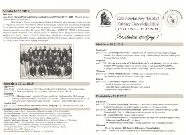 XXI Powiatowy Tydzień Kultury Chrześcijańskiej 10.11.2019 – 17.11.2019