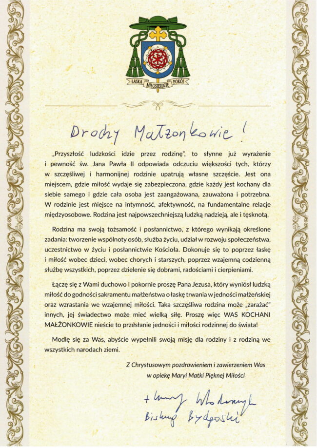 Posłanie dla Rodzin Parafii KomunikatyPrzez Parafia Więcbork2022-07-17Zapraszamy do zapoznania się z posłaniem Biskupa Krzysztofa Włodarczyka do Rodzin naszej parafii.