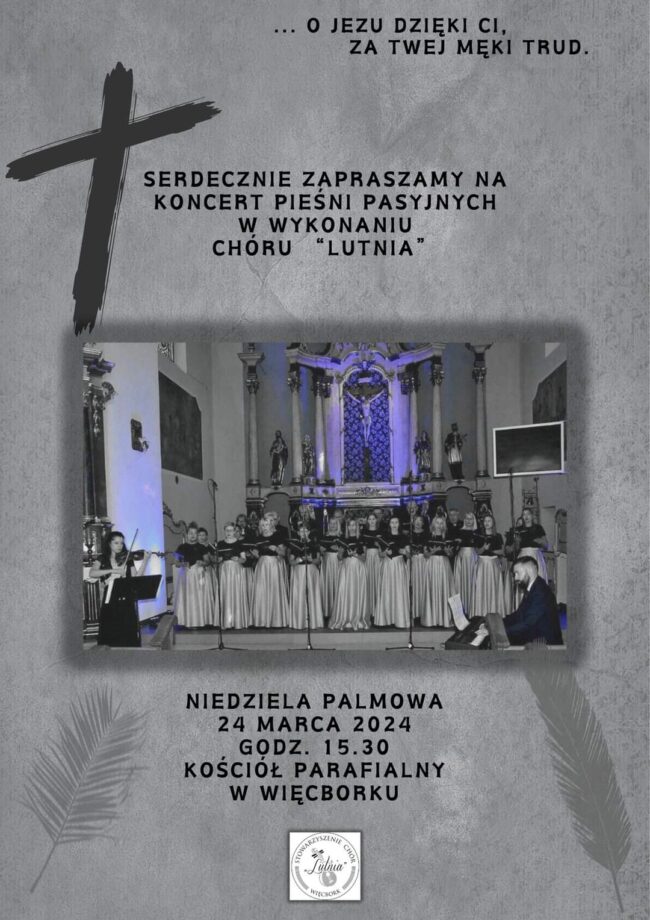 Zapraszamy na Koncert Pieśni Pasyjnych w wykonaniu Chóru LUTNIA – Niedziela Palmowa o godz. 15.30