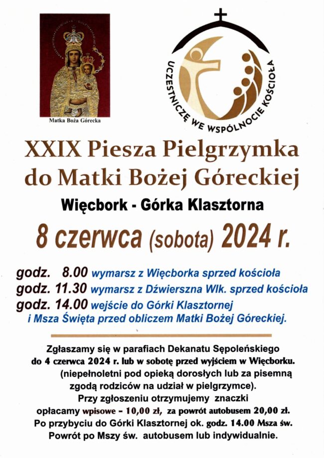 XXIX Dekanalna Pielgrzymka do Górki Klasztornej 8 czerwca 2024 – ZAPRASZAMY! bez kategoriiPrzez proboszcz2024-05-11